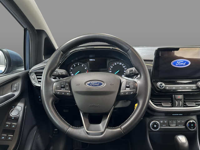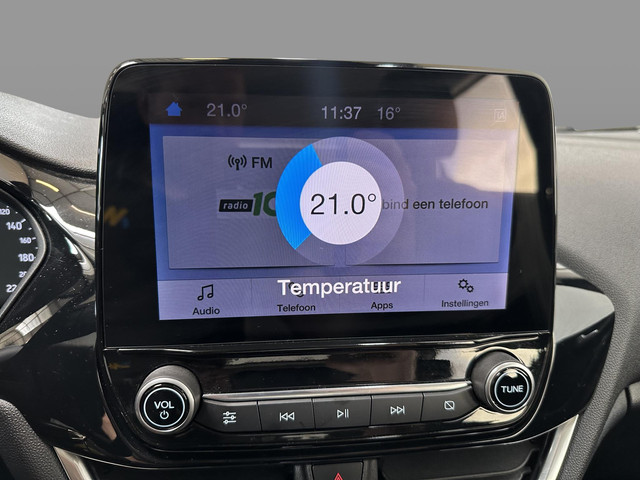 Ontspannen en zorgeloos autorijden, dat doe jij met deze Ford Fiesta. Hij heeft een benzinemotor en een automatische transmissie. De sportstoelen zorgen voor een strak uiterlijk én een uitstekende zitsteun. Natuurlijk behoren LED koplampen, in delen neerklapbare achterbank, LED-achterlichten, elektrisch bedienbare en verwarmde buitenspiegels, elektrisch bedienbare ramen achter en metallic lak ook tot de uitrusting van deze complete auto.