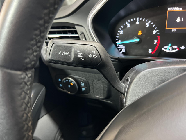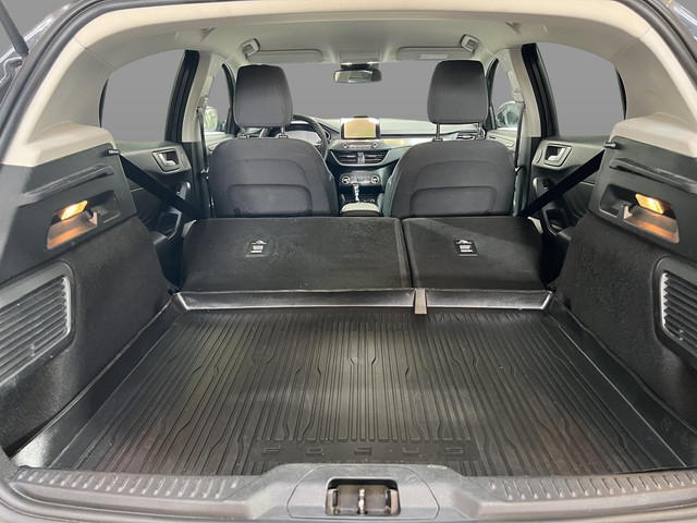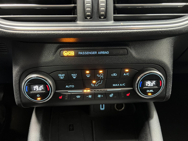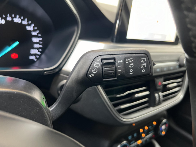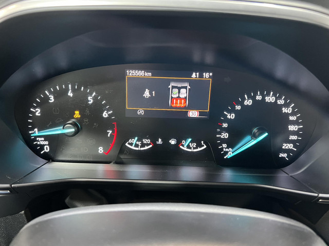 Zoals je mag verwachten van deze Ford Focus is hij uitgerust met een reeks aan actieve veiligheidssystemen. Wat deze auto ook kan, is lezen. Hij ‘leest’ voor jou de verkeersborden tijdens de rit en attendeert je erop door ze op het dashboard te projecteren. Onbedoeld buiten de rijstrook raken wordt voorkomen door het Lane-keeping systeem. Mindert een voorligger onverwachts te veel vaart, dan komt de forward collision warning in actie en waarschuwt meteen. In deze Ford vinden we verder een hill hold functie, brake assist, vermoeidheidsherkenning en bandenspanningcontrolesysteem.