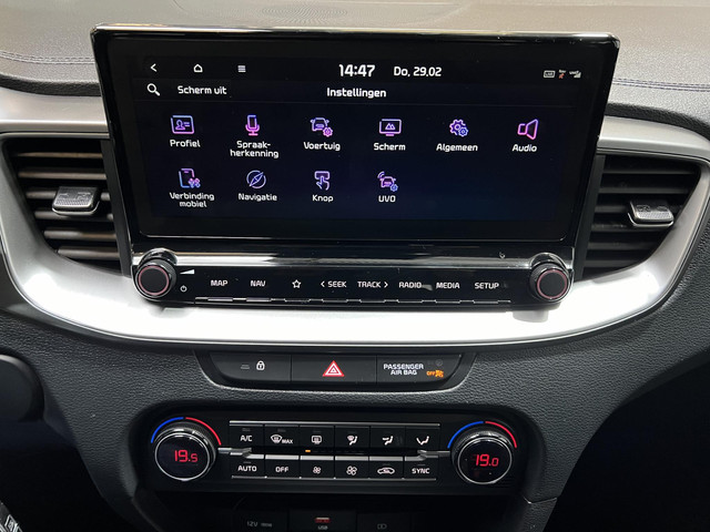 Geen nekkramp of spiegelwerk meer bij het achteruitrijden: de achteruitrijcamera kijkt en ziet alles! De auto’s van vandaag rijden niet alleen subliem, maar luisteren ook goed. Via een speciale app kan je overal diverse functies controleren en de status van de auto inzien. Een belangrijke veiligheidsvoorziening is de bediening van het audiosysteem en het full map navigatiesysteem, via knoppen op het stuur en middels spraakbediening. DAB-ontvangst geeft daarbij een kraakheldere ontvangst. Of het buiten nu warm is of koud, dankzij electronic climate control is het binnen altijd behaaglijk. Achter het stuur van deze Kia ben jij niet alleen. De auto kijkt als het ware met je mee tijdens de rit. De regensensor schakelt de ruitenwissers in als het nodig is en de automatisch inschakelbare verlichting doet de lichten voor je aan. Met cruise control, automatisch dimmende binnenspiegel, lederen stuur, centrale deurvergrendeling met afstandsbediening en lederen versnellingspook is deze auto helemaal compleet.