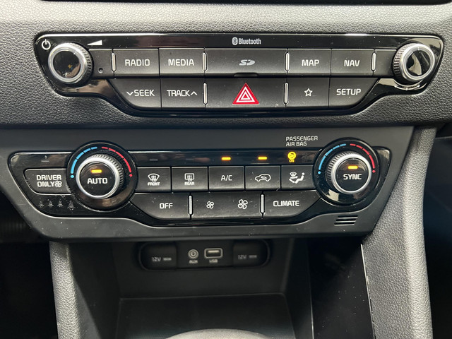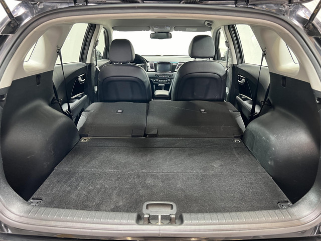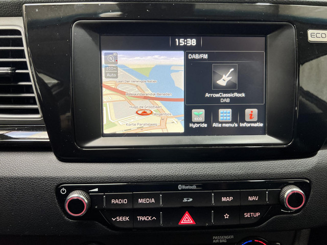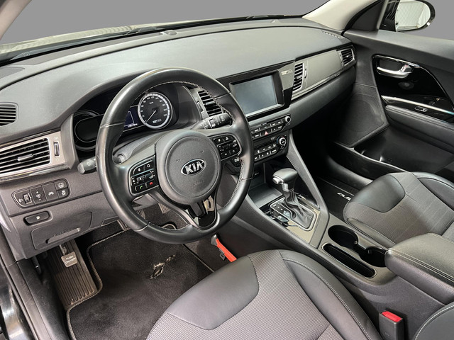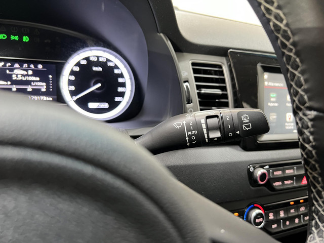 Met de achteruitrijcamera zie jij precies wat er achter de auto gebeurt. In deze Niro vind jij schakelaars op het stuur om het full map navigatiesysteem te bedienen en het audiosysteem met DAB-ontvangst. Met de electronic climate control selecteer jij de gewenste temperatuur. Het systeem doet de rest. In deze Kia kun je je concentreren op het verkeer, terwijl de auto de omgeving voor je in de gaten houdt. Een automatisch inschakelbare verlichting zorgt dat de verlichting aangaat als het donkerder wordt – in tunnels bijvoorbeeld – en de regensensor schakelt de ruitenwissers in als het nodig is. Je hoeft er niets aan te doen. De cruise control zorgt voor een mooie, gelijkmatige snelheid die je zelf instelt. Dat is relaxt! De uitrusting van deze Kia is met automatisch dimmende binnenspiegel, lederen stuur en versnellingspook en centrale deurvergrendeling met afstandsbediening behoorlijk compleet.