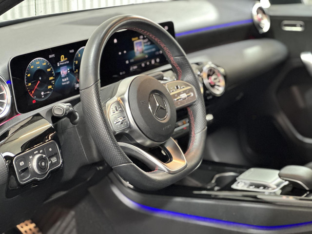 Dankzij hoogwaardige techniek en verschillende veiligheidssystemen, biedt deze Mercedes-Benz A-klasse je optimale veiligheid en comfort tijdens iedere rit. Sportief, stoer en net even anders dan anders, mede dankzij de AMG-styling. Hij heeft een benzinemotor en een automatische transmissie. De verwarmbare voorstoelen zijn een heerlijke extra optie, waarmee je jezelf en je bijrijder een groot plezier doet. De sportstoelen geven het interieur van deze A-klasse een super strakke en sportieve uitstraling. Volop licht en ruimtelijk gevoel geeft het elektrische bediende glazen panoramadak. Tot de voorzieningen van deze auto behoren 18 inch lichtmetalen velgen, warmtewerend glas, LED-achterlichten, verstelbare lendensteunen, metallic lak, elektrisch inklapbare buitenspiegels, LED-dagrijverlichting en in delen neerklapbare achterbank.
