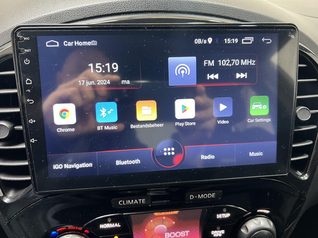 De achteruitrijcamera vergemakkelijkt achteruit inparkeren. Je ziet duidelijk wat er achter de auto gebeurt. Het spreekt voor zich dat een auto als deze ook van automatische airconditioning is voorzien. Het drukke verkeer eist onderweg al jouw aandacht op. Daarom is het goed dat deze Nissan is voorzien van diverse systemen die je assisteren tijdens de rit. Een automatisch inschakelbare verlichting neemt het waar als het donker wordt of gaat schemeren, en schakelt dan automatisch de verlichting in. Op dezelfde manier "ziet" de regensensor de eerste spatjes regen en schakelt dan de ruitenwissers in, en als het harder gaat regenen zet hij de ruitenwissers ook in een snellere stand. Lekker koersen op een constante snelheid: daarvoor zorgt de cruise control. Kom je aanlopen, dan ontgrendelt de keyless entry gastvrij de sloten. Da’s een makkelijke optie! Deze Nissan is voorzien van navigatiesysteem, lederen stuur, centrale deurvergrendeling met afstandsbediening, boordcomputer en lederen versnellingspook.