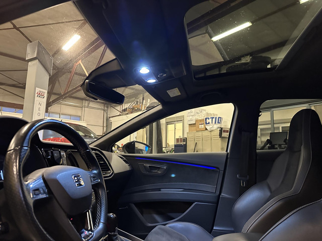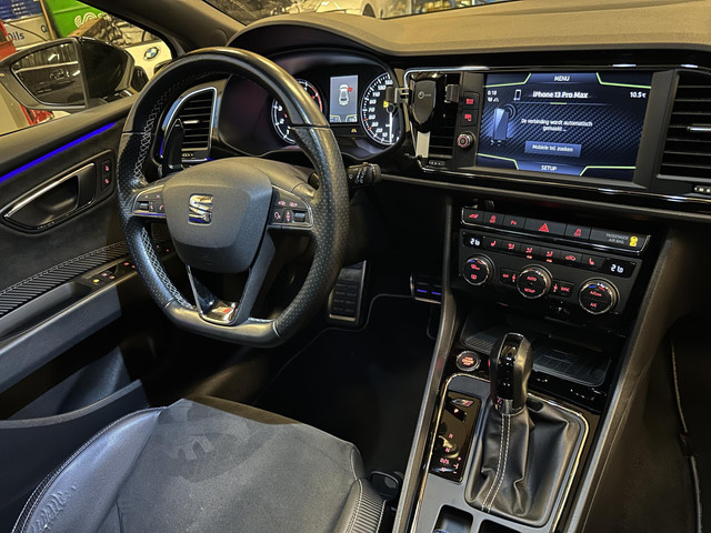 Hij is klaar voor nog jaren rijplezier, deze Seat Leon ST uit 2017. Er staat 97334 kilometer op de teller. De aandrijving komt voor rekening van een benzinemotor en een automatische transmissie. De sportstoelen geven het interieur van deze Leon ST een super strakke en sportieve uitstraling. Voel die ruimte eens! Lekker veel licht door het elektrisch bediende glazen panoramadak. Tot de voorzieningen van deze auto behoren 19 inch lichtmetalen velgen, sportonderstel, adaptief dempingsysteem, aluminium dakrailing, extra getint glas, LED-achterlichten, verstelbare lendensteunen, elektrisch bedienbare ramen achter, elektrisch inklapbare buitenspiegels, LED-dagrijverlichting en in delen neerklapbare achterbank.