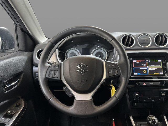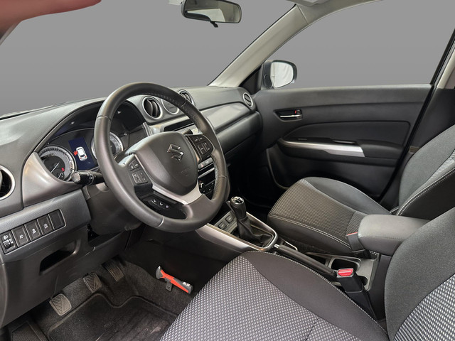 Van buiten gezien zou je niet denken dat-ie van binnen zo ruim is. En zo zit deze Suzuki Vitara vol met nog veel meer aangename verrassingen. Dat begint al bij de pomp. In deze Suzuki vind je een benzinemotor en een handgeschakelde vijfversnellingsbak. Ook in de winter en als het koud is, heb je het snel weer warm dankzij de stoelverwarming in deze auto. In deze auto profiteer jij onder andere ook van: 17 inch lichtmetalen velgen, aluminium dakrailing, extra getint glas, elektrisch bedienbare ramen achter, elektrisch bedienbare en verwarmde buitenspiegels en in delen neerklapbare achterbank.